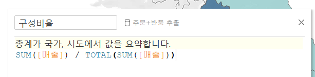 2. "전국 매출 구성 비율" 계산식을 아래와 같이 만들어 줍니다.