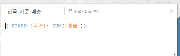 - 2번과제에서 봤던 것처럼 필터에 따른 뷰가 변경이 되어도 전국기준매출은 FIX되어 있어서 테이블 계산식에도 변동이 없게 하기 위함입니다.