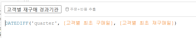 2. "고객별 최초 구매일"과 "고객별 최초 재구매일"을 가지고 DATEDIFF 함수를 이용해서 'quarter'기준으로