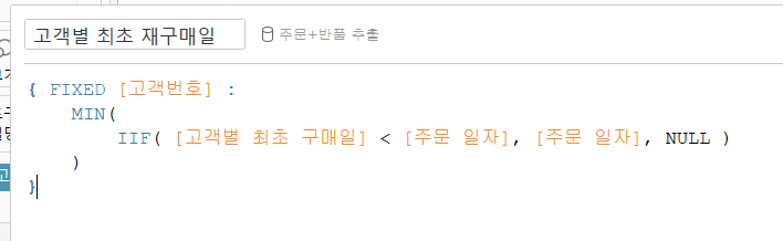 1. 최초 구매일을 활용해서 2번째 구매일 "고객별 최초 재구매일"을 만들어 줍니다.