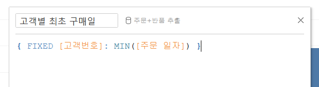 3. 만든 "고객별 최초 구매일"을 색상에 위치시킵니다.