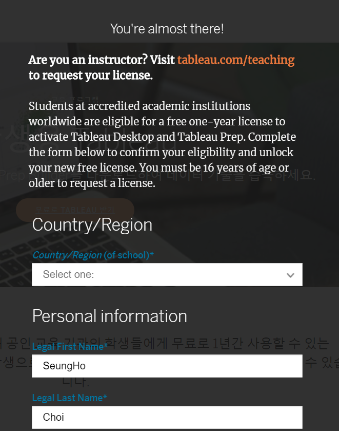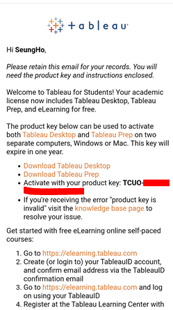 참고로 태블로 학생 라이센스는 1년마다 갱신이 가능하니 유용하게 사용하시면 될 것 같습니다.