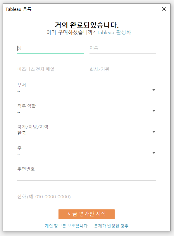 Tableau Desktop 무료 평가판을 선택해 주셔서 감사합니다.