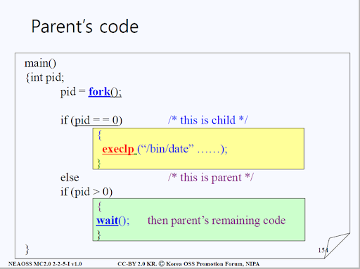 - 자식이 부모에게 output data를 보냄(wait 시스템 콜)