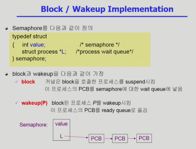 - P연산 - 자원이 없으면 process를 큐에 추가하고 block