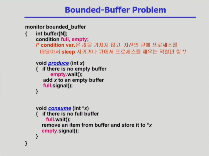 - empty, full이 condition variable
