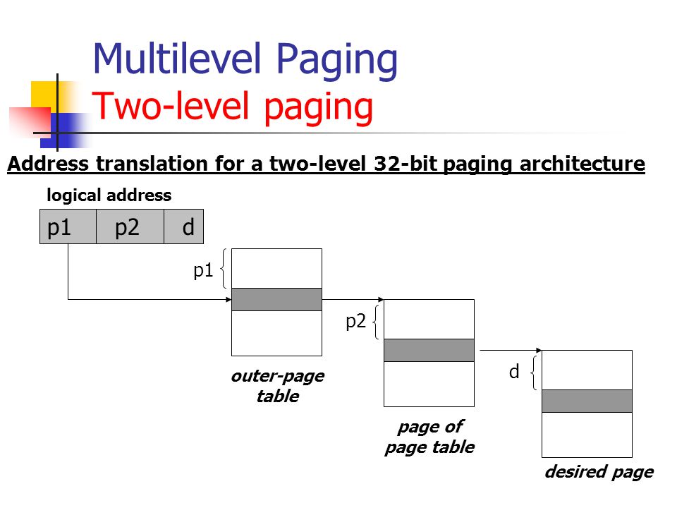 - 그러나, 대부분의 프로그램은 4G의 주소공간중 일부만 사용하므로 page table 공간이 낭비