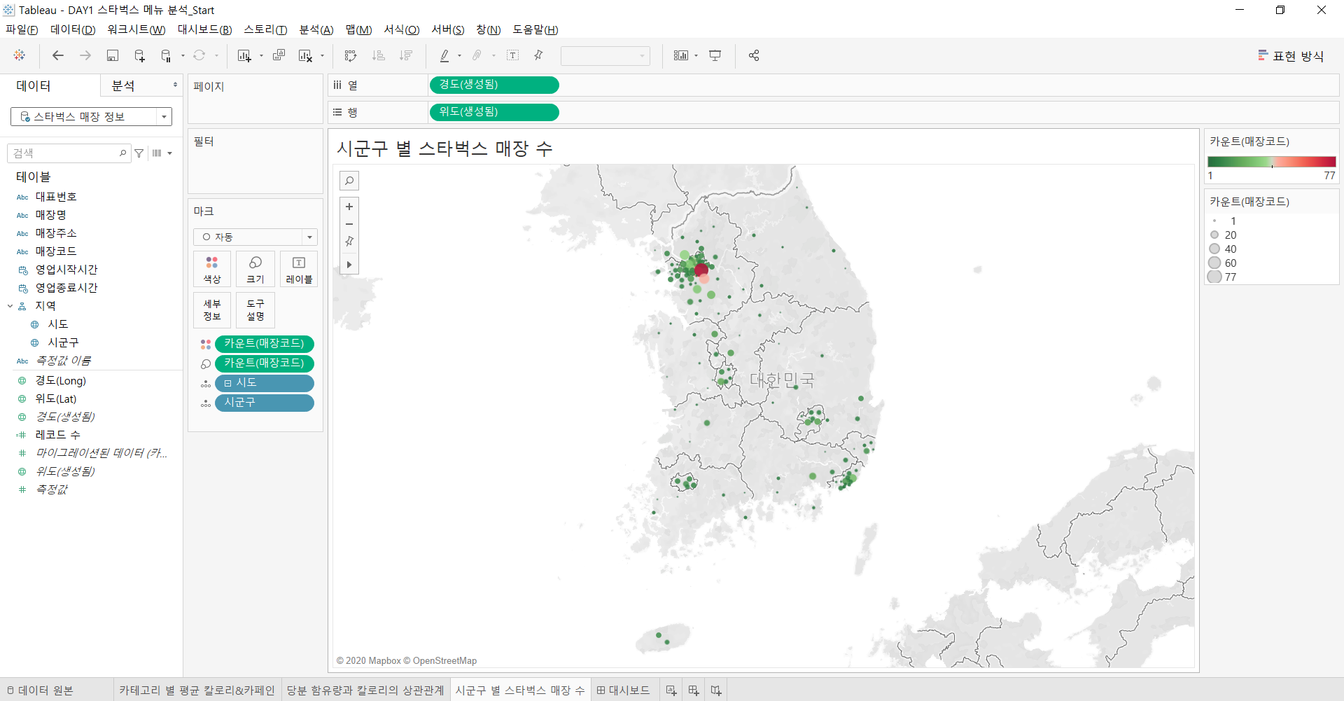[Tableau] (Day 1) 스타벅스 데이터 시각화