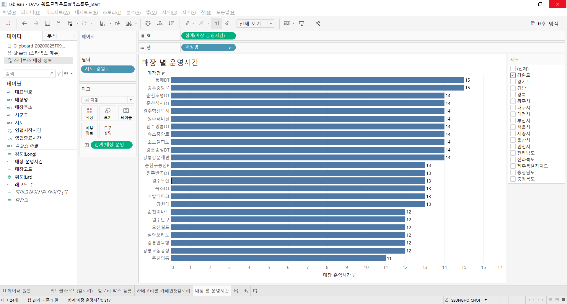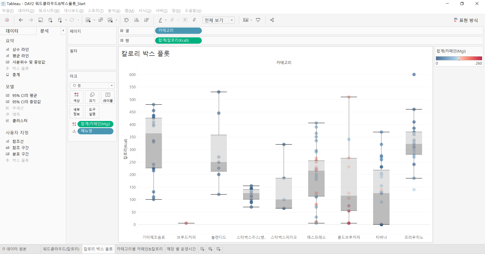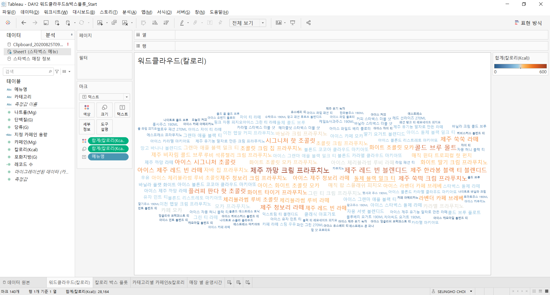 [Tableau] (Day 2) 스타벅스 데이터 시각화 2
