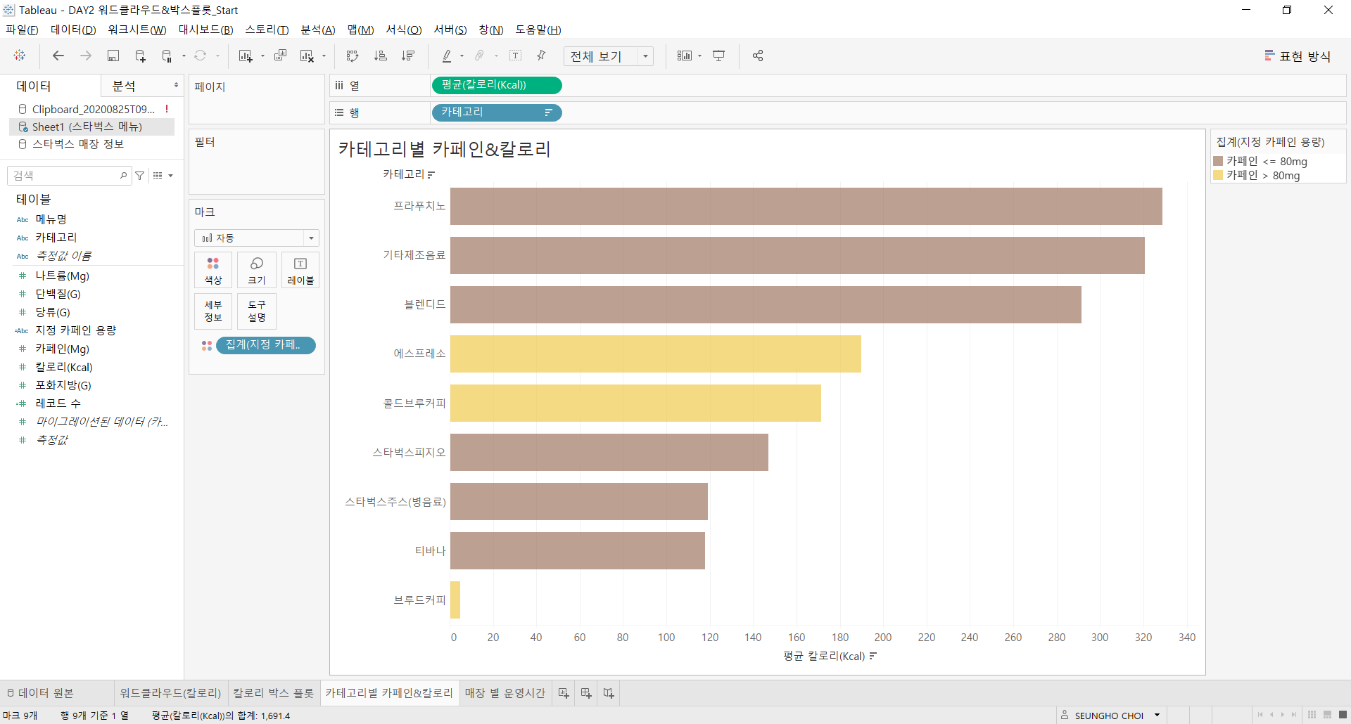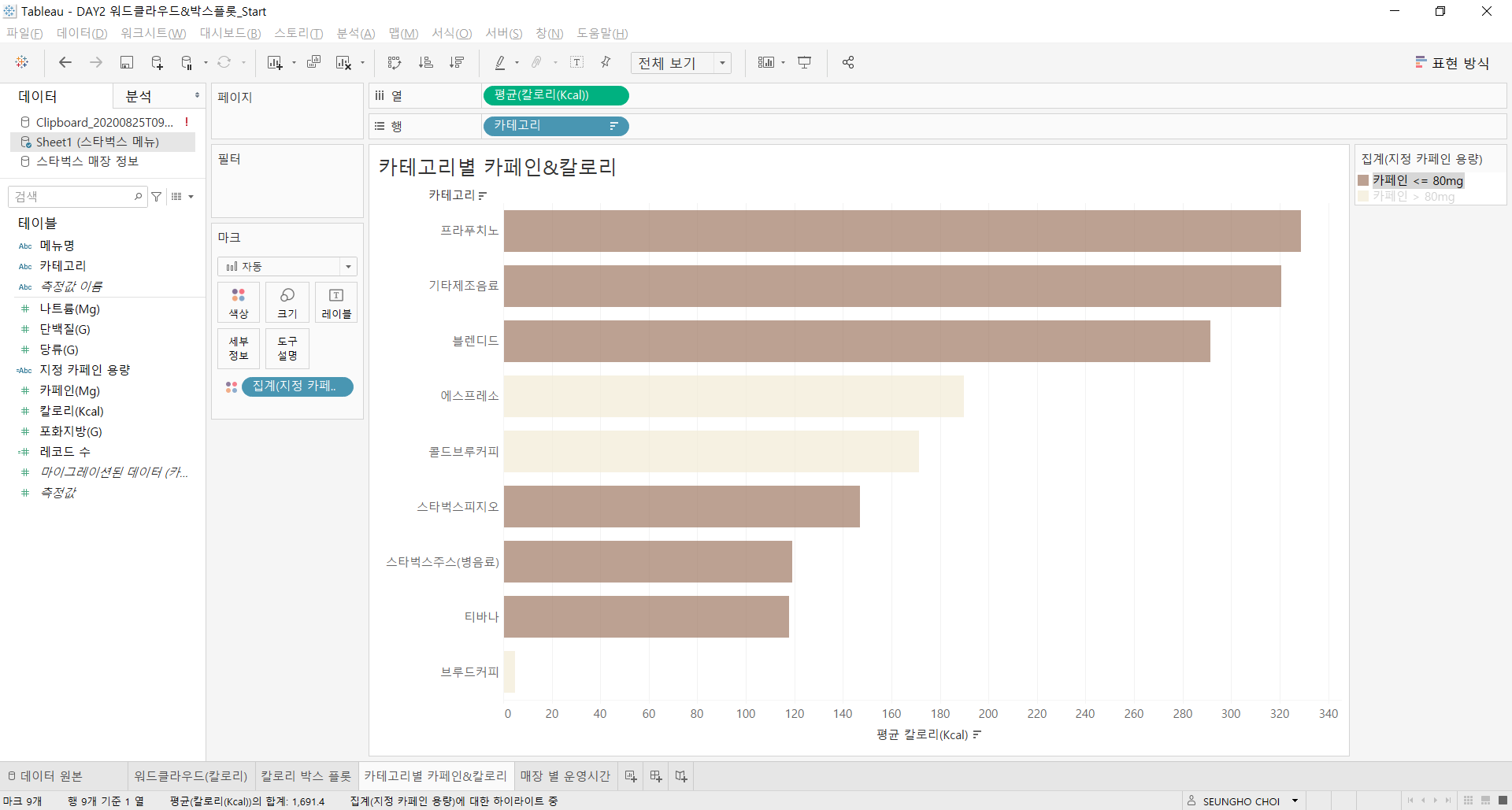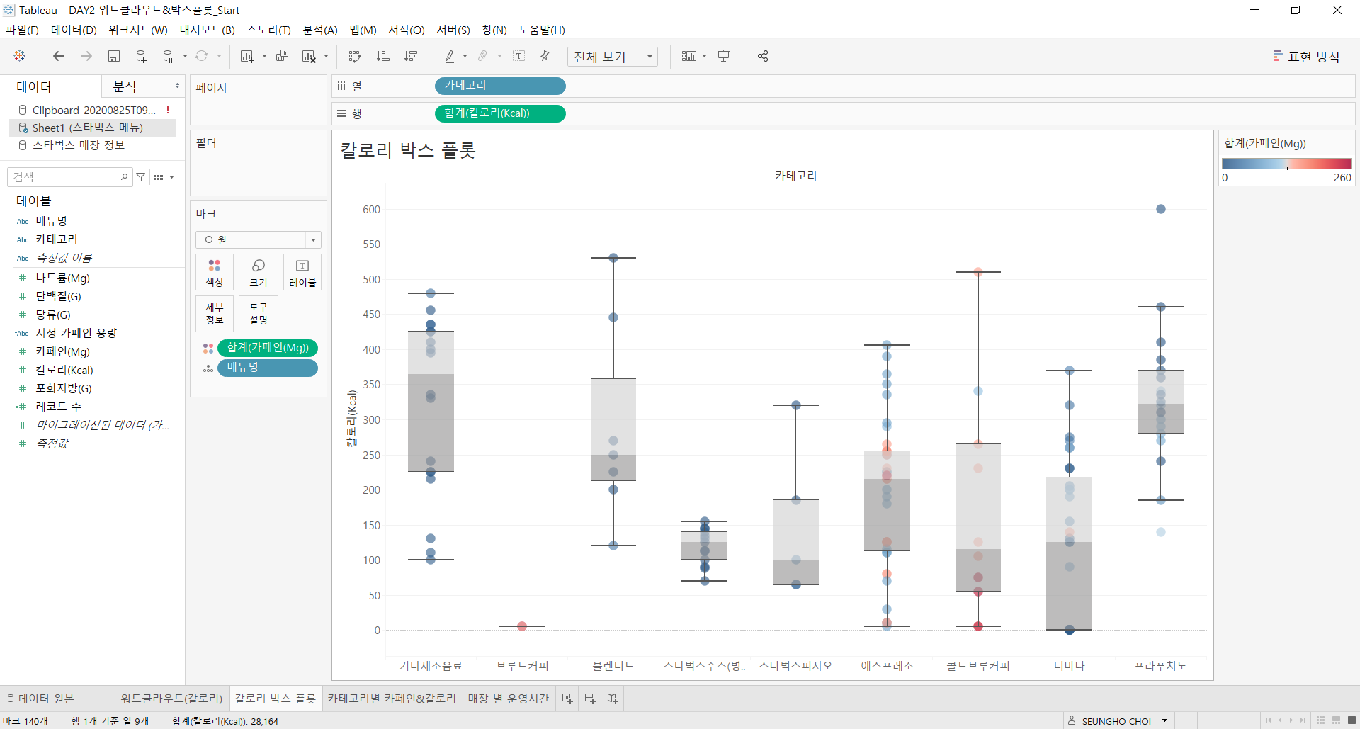 [Tableau] (Day 2) 스타벅스 데이터 시각화 2 본문
