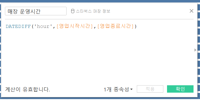 1. 매장 운영시간을 알기 위해 아래와 같이 계산식을 만들어 줍니다.